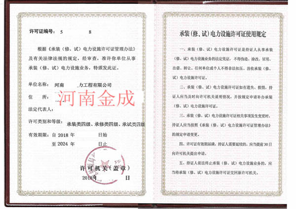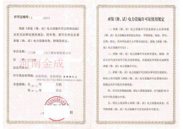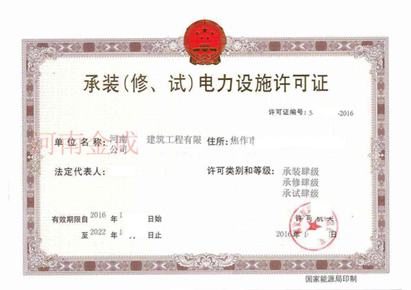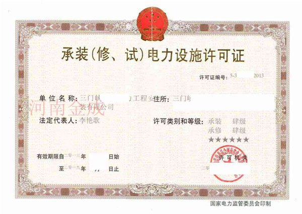 • 承裝(修、試)電力設(shè)施許可證