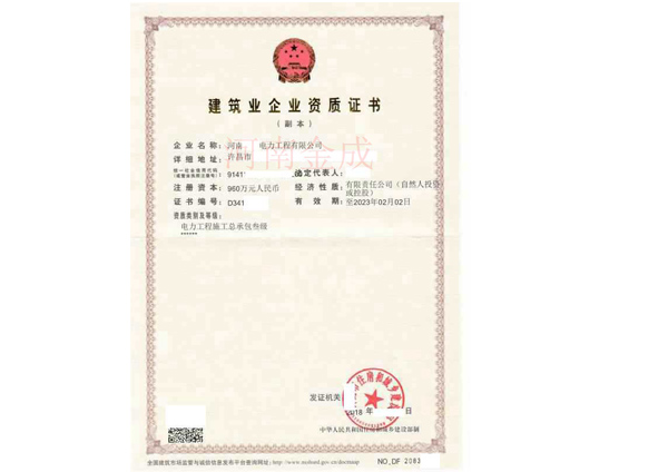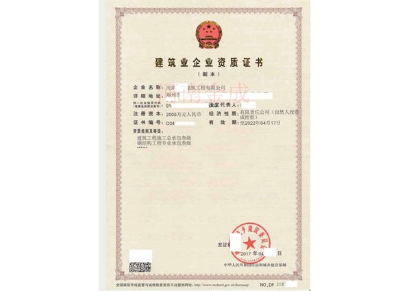 • 建筑業(yè)企業(yè)資質(zhì)證書(shū)副本