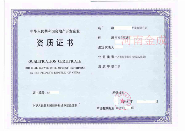 • 房地產(chǎn)二級(jí)資質(zhì)證書(shū)