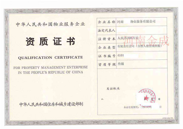 • 物業(yè)三級(jí)資質(zhì)證書(shū)